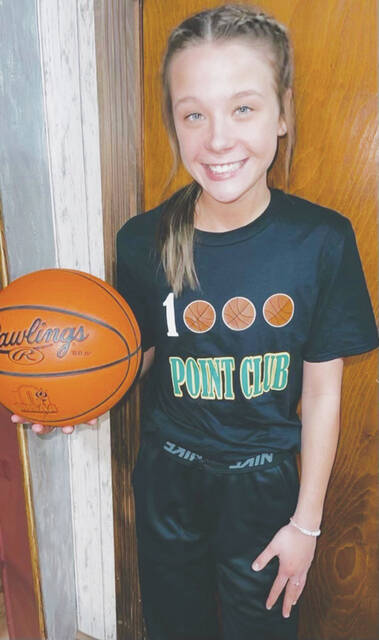 On a free throw late in a Monday, January 10 game at Fairfield, West Union Lady Dragons senior Lexie Rowe became the third girls basketball player in school history to eclipse the coveted 1,000 point mark. Rowe finished Monday’s game with 1,006 total points, joining Jill Potts Kennedy (1,034) and Natasha Barr (1,014) in the exclusive club. With plenty of regular season remaining, Rowe should easily become the school’s all-time leading girls scorer. (Photo provided)