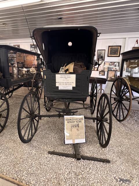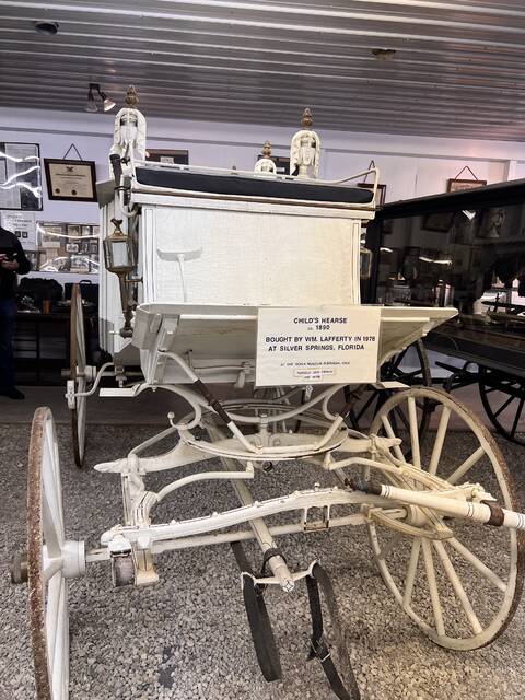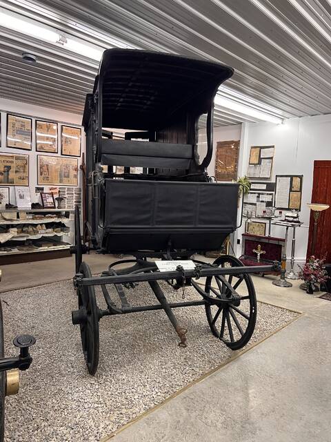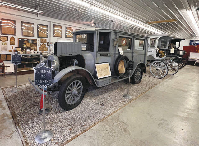The museum, housed next door to the Lafferty Funeral Home holds cherished memorabilia to commemorate the longevity of the family business as the oldest single-family funeral business in Ohio. The exhibit was established in memory of John T. and Richard Lafferty’s father, James William, who passed away in 1987. On display are multiple hearses from each generation, an embalmer’s buggy, Adams County’s first motorized ambulance, old articles and photographs, a collection of old ledgers dating back to the 1880s, caskets, body baskets, and other fascinating relics.