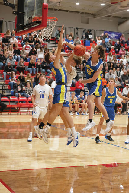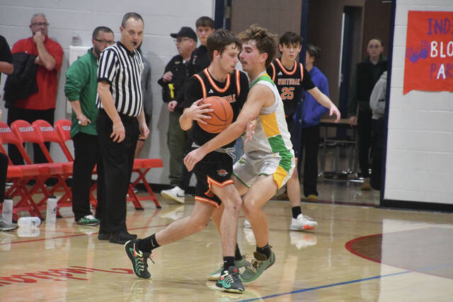 The Peebles five definitely made an early statement as they scored the half’s first 10 points, getting three-pointers from Paxton Ryan and Connor Gross. North Adams got on the board at the 2:15 mark of the first quarter with a basket by Thaddeus Moore but the Indians answered from long range, getting three-balls from Josh McClary and Bo Johnson to go up 16-2. After a three-pointer from the Devils’ Caleb Brown, Ryan hit again from long range and a fired up Indians squad led 19-5 after one.