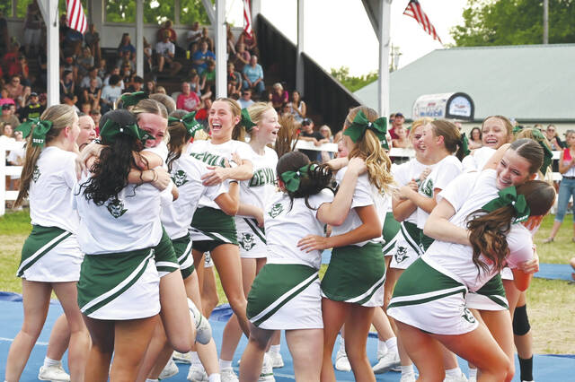 Following the awards, the Queen pageant featured four contestants representing local 4-H clubs and FFA chapters. Antoinette Grimes, a graduate of Eastern High School and a member of the Adams County Beef and More 4-H Club, was crowned the 2025 Fair Queen. As the afternoon continued, crowds grew larger, and the fairgrounds filled with families arriving for the evening’s events. The cheerleading competition drew a packed audience, and by the time the demolition derby began at 7 p.m., the bleachers were full of spectators eager to see the first night of action in the Dirt Track Complex.