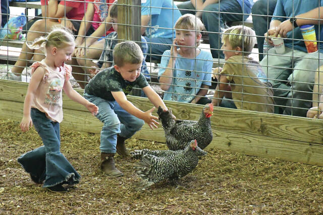 The fair’s motorsport events remained as popular as ever, with demolition derbies on the first night and the last, rodeo action on Monday, Moto Cross on Tuesday, Auto Cross on Wednesday, the Sullivan Truck Pulls on Thursday, and the Battle of the Bluegrass tractor pull Friday night. Saturday’s finale included the Livestock Scramble, and Barn Yard Olympics. From the micro mini tractor pulls to the thunder of the full-sized rigs, each event drew large crowds eager to cheer on competitors.
